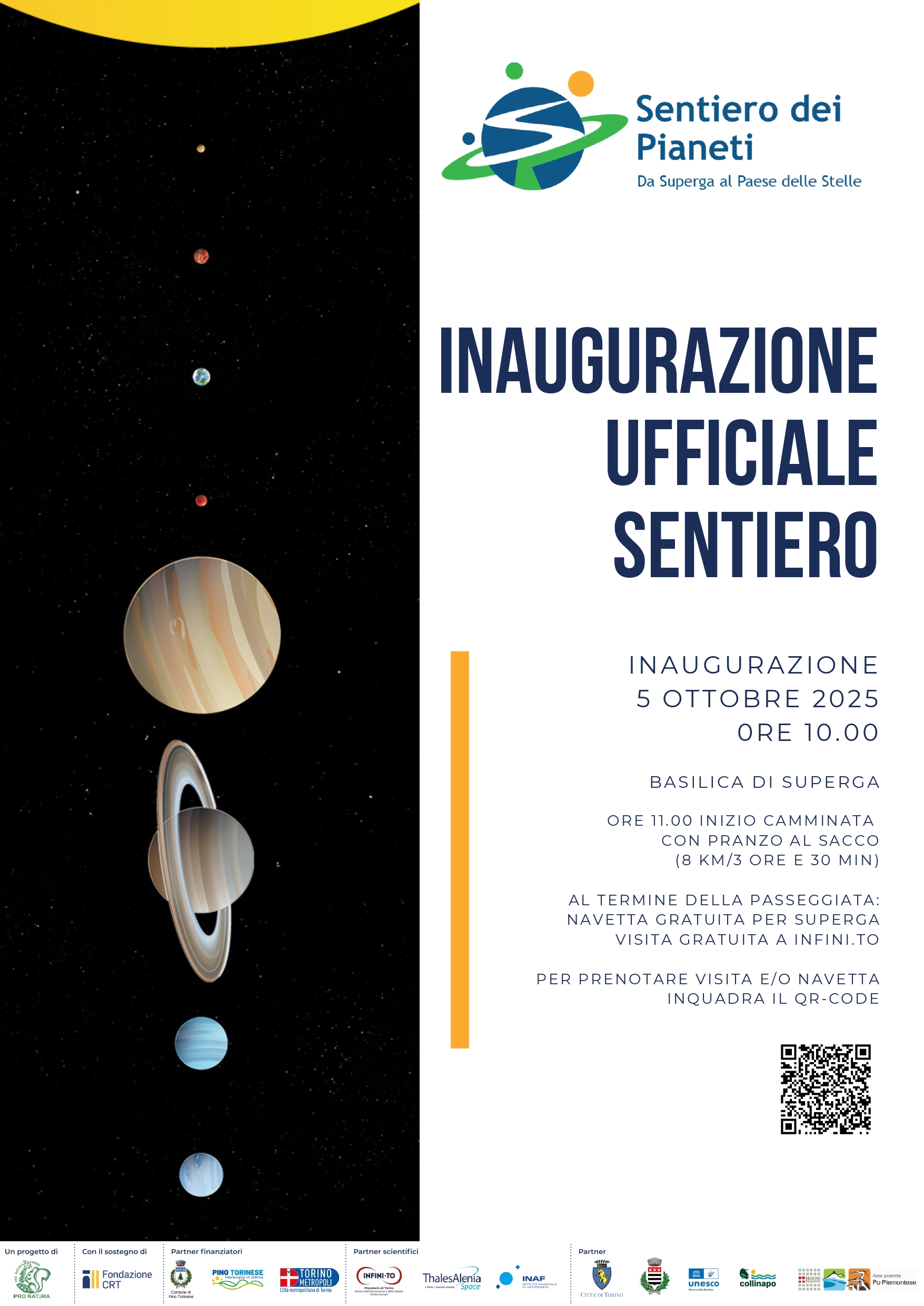 Domenica 5 ottobre l'inaugurazione del nuovo sentiero tematico che collega la collina di Superga a Infini.to - Planetario di Torino, a Pino Torinese.