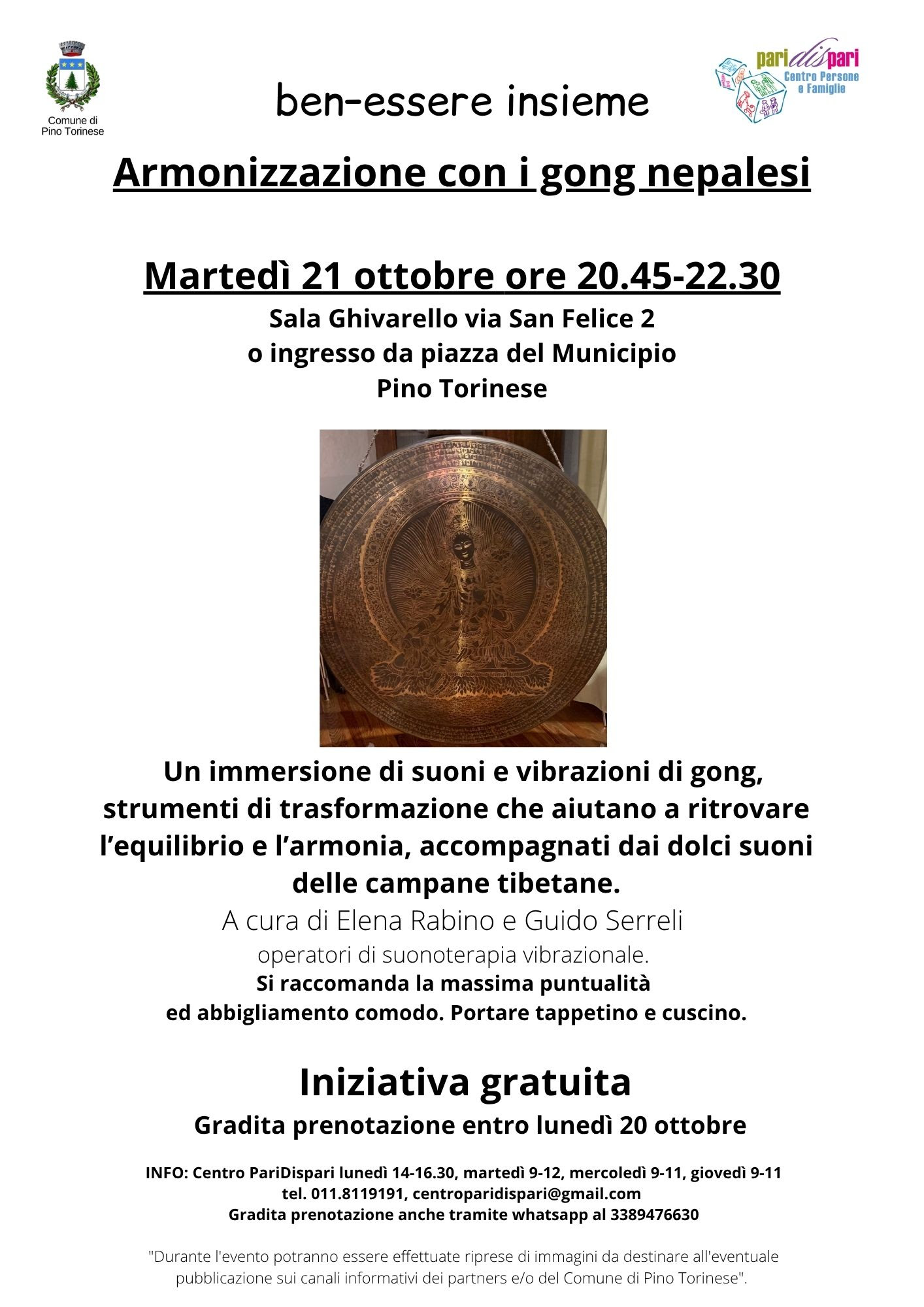Serata dedicata all'armonizzazione con i gong nepalesi.