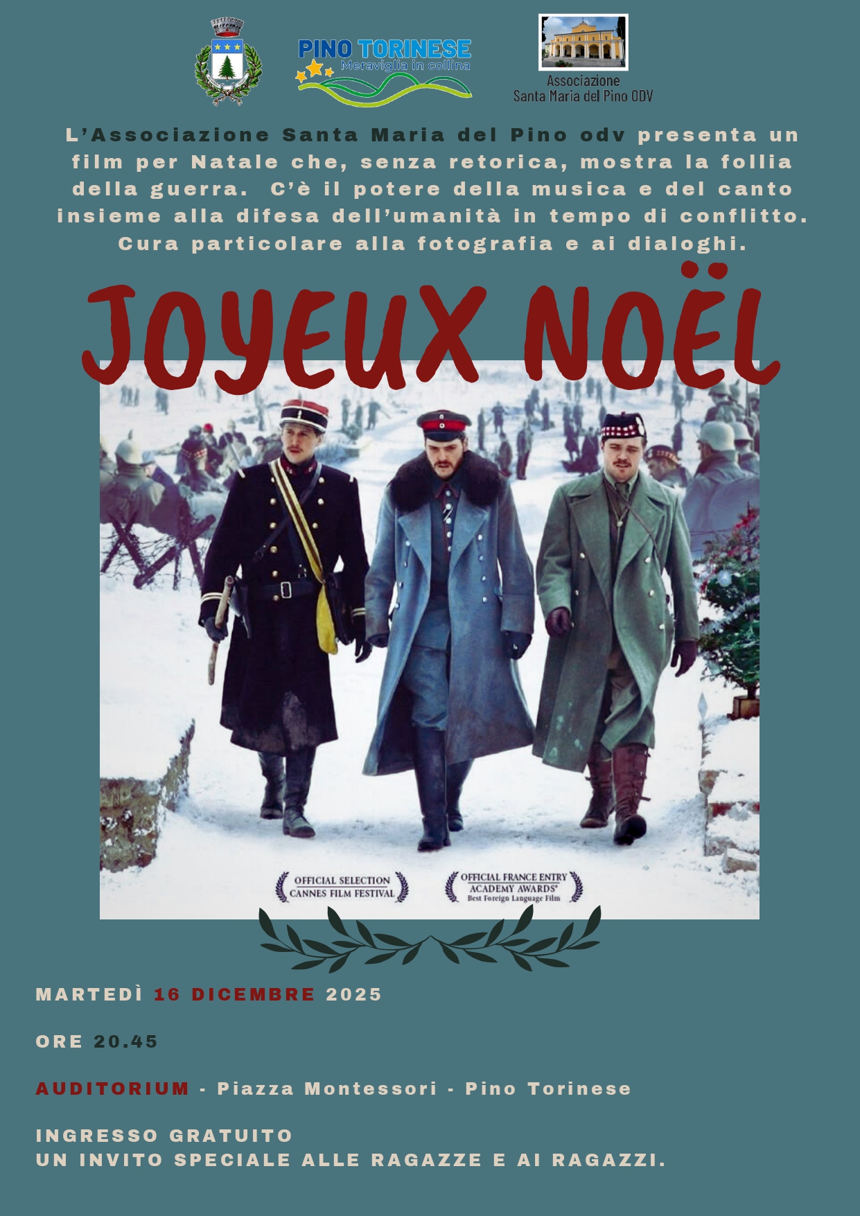 Martedì 16dicembre alle ore 20:45 in Auditorium proiezione del film "Joyeux Noel" di Christian Carion (2006), nominato all'Oscar per Miglior film straniero, ispirato a una storia vera.