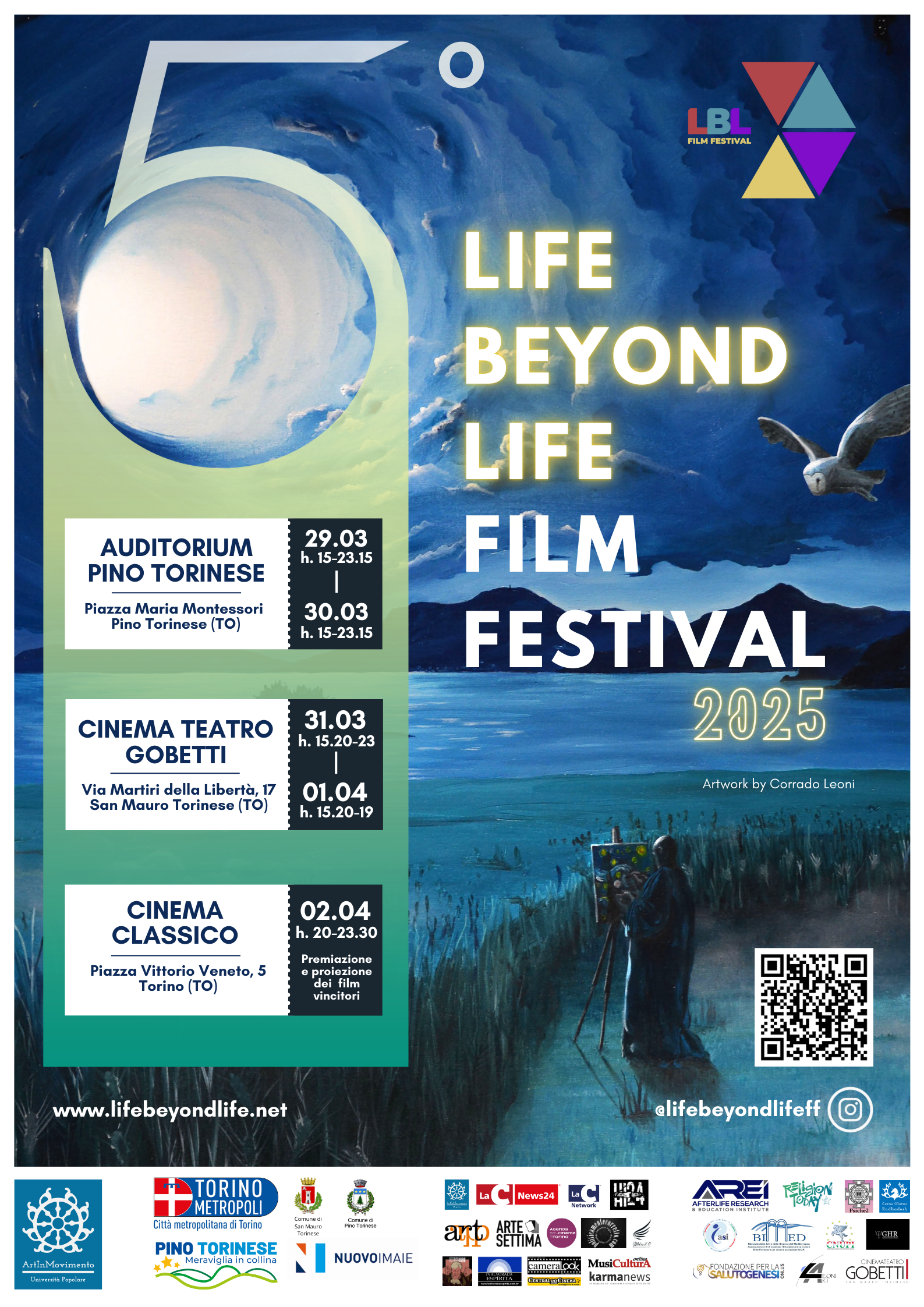 Torna il film festival proposto dall’Università Popolare ArtInMovimento, in sinergia con l’Associazione Culturale SystemOut, l’A.R.E.I. (Afterlife Research and Education Institute) e il Religion Today Film Festival, che si focalizza sui temi legati alla vita oltre la vita. Tra i film nella line up della quinta edizione: il belga “It burnes” diretto da Kate Maveau; l'americano “As easy as closing your eyes” diretto da Parker Croft; e il giapponese “The Afterlife Photo” diretto da Tatsuaki Mizoi. Per maggiori informazioni VISITA IL SITO